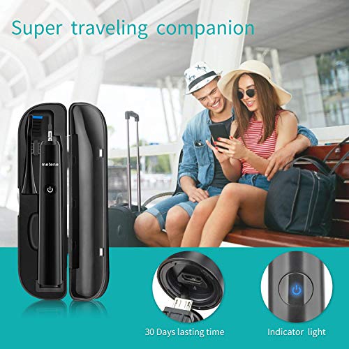 Details: Electric Toothbrush, Rechargeable Power Sonic Toothbrush with 40000 VPM, 5 Optional Modes, Smart Timers & 2 DuPont Brush Heads, metene Whitening Electronic Toothbrush for Adults with Travel Case, IPX7 Waterproof, Fast Charging Features: ①. Clean oral effectively with 40000 times per minutes and this electric toothbrush can remove up to 300% more stains and plaque. ②. This ultrasonic toothbrush has smart mode memory, 2 minutes auto stop and 30 seconds timer reminder for moving help you get good brushing habits. ③. 4 Hours Charge Last For A Minimum Of 30 Days with a low battery reminder and auto shut off after a full charge. ④. This spin toothbrushes for adults IPX7 is waterproof and the whole electronic toothbrush is washable, which can be used when you are taking a shower ⑤. This mechanical toothbrush kit has 2 soft dupont brush head. Quick charge and suit for family or travel use with a eletronic toothbrushes box. ⑥. This toothbrush electric has 5 modes with different indicator light to meet different demands: whiting:strong-remove stubborn stains. Cleaning: medium-regular cleaning. Sensitive: soft-for sensitive teeth. Polish: strong- brighten teeth. Massage: gentle-for gums massage. Specifications: ◈ Electric toothbrush power source: DC 5V ◈ Product material: ABS/TPE ◈ Bristle: Dupont nylon ◈ Sonic electric toothbrush power consumption: 1.5W ◈ Working temperature: 0-50℃ ◈ Charge time: 4 hours to be fully charged ◈ Size: 9 x 1x 1inch Package includes: ①.1 x Electric Toothbrush ②.2 x Replacement heads ③.1 x USB Charging cable with adapter ④.1 x User manual Advice: Take of your oral health and love brushing your teeth after 7 days, and improve your oral oral health in just 2 weeks.