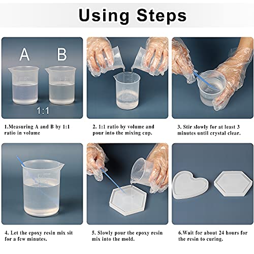 - Easy to Use: 1:1 volume mixing ratio and 10-40 minutes of working time for the resin epoxy. As step-by-step picture instructions are enclosed with the resin kit for beginners to use our resin accessories easily.