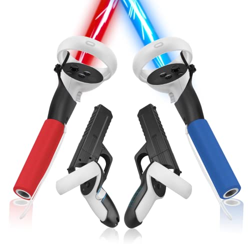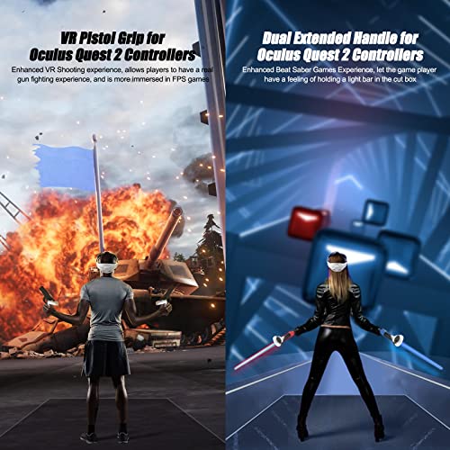 - [Enhanced VR Shooting/Beat Saber Games Experience] Esimen Oculus Quest 2 controller shell combination (Extended Handle and VR Game Gun for Meta Quest 2). Allows you to enjoy the experience of holding a pistol in a VR shooting game and a light bar in a Beat Saber game, bringing you a more advanced gaming experience.