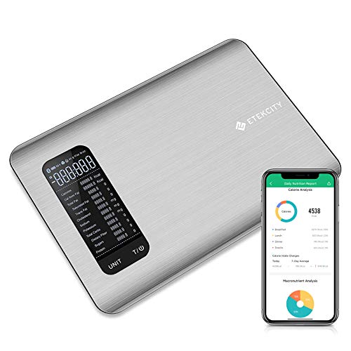 Details: Etekcity smart nutrition scale pairs with the free VeSync app to bring comprehensive nutrition stats right to your phone. By pulling from the Nutritionix extensive database of nearly 1 million food items, you can track, save, and analyze your daily eating habits. With its sleek, slim,and stainless steel design, The ESN00 smart nutrition scale makes the perfect kitchen helper. Three square meals a day will never be the same. This nutrition scale could display 12 nutrition facts like calories, total carbs and protein, and analyze 19 Nutrition Data in VeSync app. With the reliable food data, it meets the requirement for strict nutrition intake for the diabetic, the fitness, the youth's and other people pursuing healthy and balanced diet.Specifications:Weight Capacity - 176.4 oz / 11 lb / 5000 g / 5000 mLUnits - oz / lb:oz / g / mL (water/milk) /fl’oz (water/milk) Data - 19 nutrition data Increments value - 0.4 oz. / 1 g/ 1 ml Backlight time - 30-120 seconds (adjustable in app) Dimensions - 9.2 x 6.3 x 0.6 inch/ 235 x 160 x 16.5 mmBattery - 2 x 1.5V AAA batteriesPackage Contents:1 x Smart Nutrition Scale2 x AAA Batteries (Pre-Installed)1 x Quick Start Guide.AttentionBarcode scanner is currently only available in US.