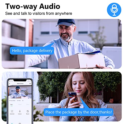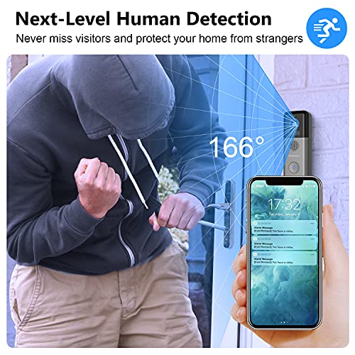 - 【Smart PIR Human Detection & 2-Way Audio】Built-in PIR Sensor allows you to receive instant notifications when anyone presses your doorbell or when motion is detected. It also supports 5 level adjustable sensitivity. The camera has a built-in microphone and speaker, so you can see and speak directly to visitors from anywhere via two-way audio.