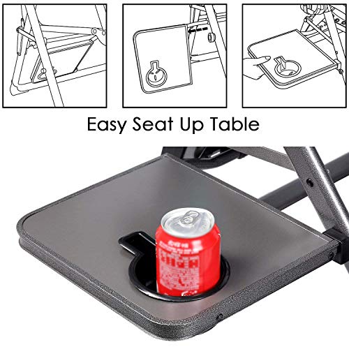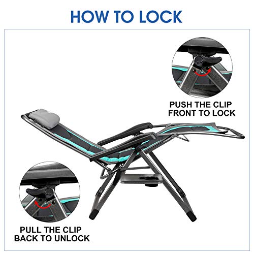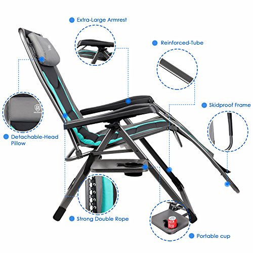 Details: EVER ADVANCED zero Gravity chair is made from durable high quality fabric & powder coated steel frame so it can supportup to 350lbs. Padded pillow foldaway side table were equipped. Comfortable design provide more convenient & relax experience. Dual fingertip locking system allows you stay in any position from sittingup to on it. Our Lounger chair folds up easily for transport & storage, which is widely used not only in camping, Courtyard, sand beach, but also in any indoor & outdoor activities. Oversized seat can meet requirement of different body type. We believe that you will enjoy the leisurely & comfortable time from this zero gravity chair.