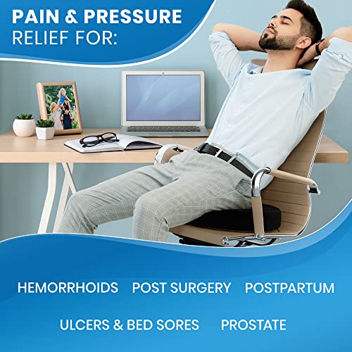 - 😌Pain and Pressure Relief for Your Lower Body: Use our donut pillow for tailbone pain after various types of surgery, postpartum recovery, or during a hemorrhoid flare up. The tailbone pillow allows your sensitive areas to sit above the seat, ensuring that your body weight isn't putting unwanted pressure on those areas