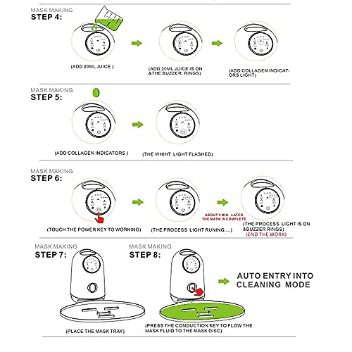 - ✔️Natural and Greener Facial Mask: This facial mask maker machine can make a facial mask by using the juice of fruits or vegetables, milk, tea and collagen, which is all natural ingredients. No preservatives, no lead, no mercury or other irritating substances, provide you a greener and healthier skin care.