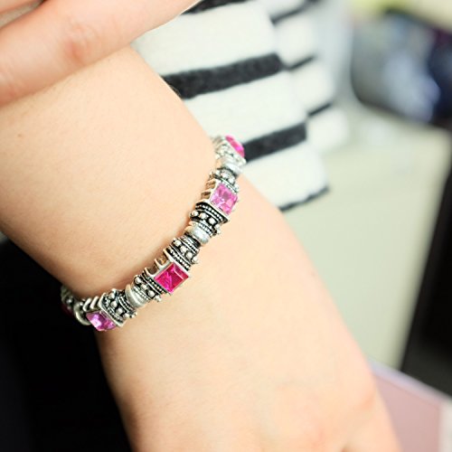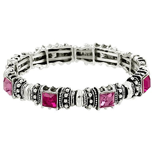Details: Falari Vintage Acrylic Crystal Antique Silver Stretch Bracelet. Height: 3/8". Fits up to 7"