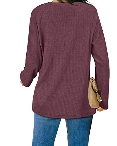 Fall Sweaters For Women Plain Tunic Shirts Purple Pullover Loose Fitting Clothes L