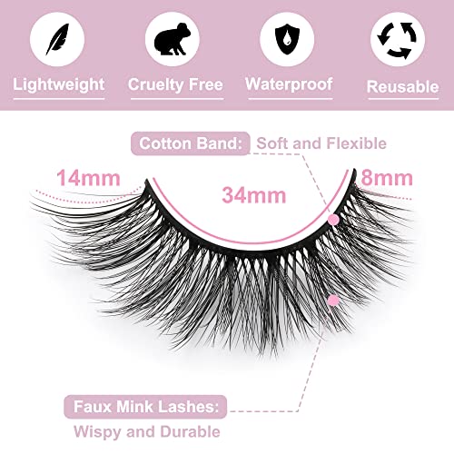 - 💗𝐍𝐚𝐭𝐮𝐫𝐚𝐥 𝐄𝐲𝐞𝐥𝐚𝐬𝐡𝐞𝐬: Kiromiro fluffy false eyelashes use high quality faux mink fiber. Soft, wispy with natural lashes ends like real mink fur. Perfect for daily use.