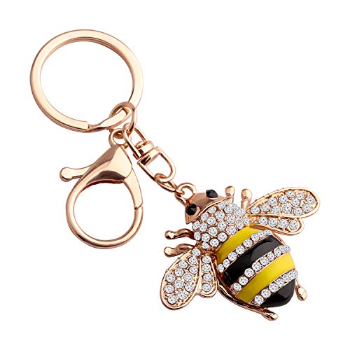 - ❤Honeybee Keychain with Rhinestone Keyring For Bags Keys Purse, Cute Crystal Yellow Bee Charm with Lobster Clasp