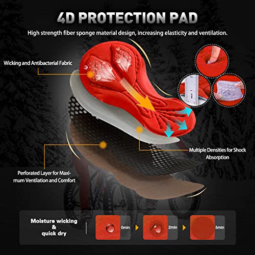 - [ Full Hip Protection ] This men's 3D padded cycling pants is made of 5 layers High Density Sponge, which can reduce friction between hip and your bike seat effectively, 3D cutting and advanced sewing process make it comfortable to wear on, relieving hip pain during the long riding.