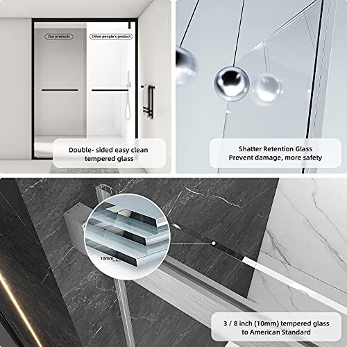 - 【Shatterproof Glass & Glass Coating】3/8"(10mm) Double-sided easy cleaning tempered glass in United States standards. Frameless shower glass panels are covered with explosion-proof membrane, shattered glass won't spill out or cause any damage. Water & Stain Resistant Glass Coating creates an easy-cleaning and long-lasting glass surface. The glass coating helps to protect from limescale buildup. It helps to reduce your cleaning time and frequency.