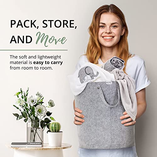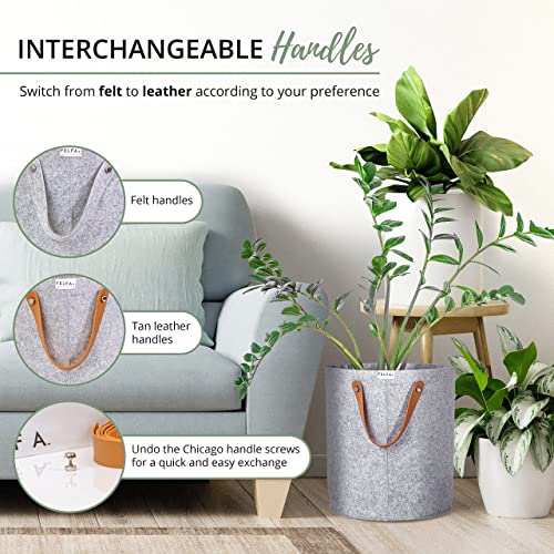 - {Sturdy and Lightweight Short, Medium, Tall Baskets} Chicago screws make it easy to replace felt handles to leather ones for different appeal. Replace the handle on the felt laundry hamper, and it becomes cute blanket storage for living room. Each storage basket can carry a large amount of stuff without bottoming out thanks to sturdy grey felt.