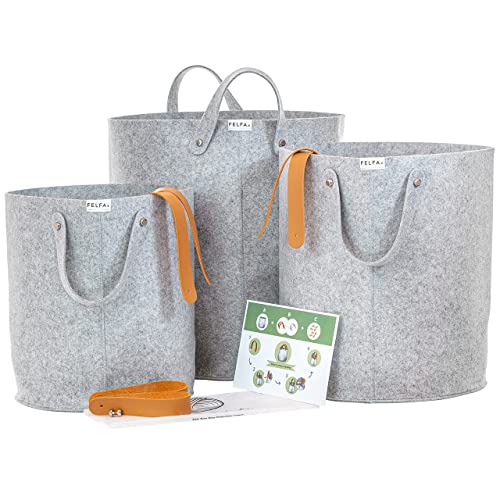 - {The Rule of 3, and Interchangeability} Our storage baskets for organizing come in a handy set of 3 with varying sizes for visual appeal. Even beginners master the Rule of 3 of expert decorators with blanket storage ideas that just work! The laundry hamper set includes interchangeable felt and leather handles so you can change up the look to suit your decor and mood.