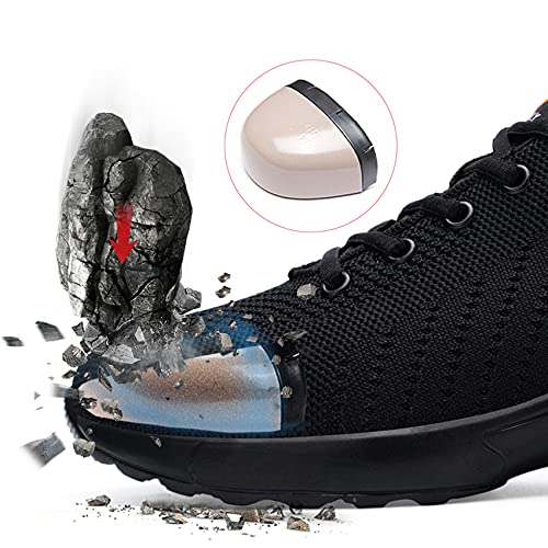 - Breathable Upper: Flying woven material feature in great breathability, keeps feet dry and comfortable feeling. The safety shoes have colored mesh with texture detail more like sneakers, stylish to wear.