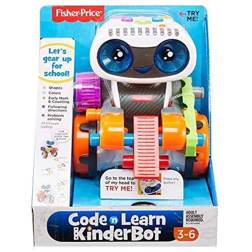 Details: With the Fisher-Price Code 'n Learn Kinderbot, preschoolers enter different codes to control their robot friend's movements. This interactive learning toy comes to life with lights and phrases, offering coding challenges that teach about early math concepts, colors, shapes, and more. There are three ways to play, a cool secret code book, and four machine accessories to expand the play for your junior engineer! Inspiring little learners to be big thinkers. Academics: Code 'n Learn Kinderbot teaches early math concepts, colors, letters and more through exciting coding challenges. Reasoning & Problem Solving: Kids can practice their coding and problem-solving skills as they figure out how to "program" paths for their robot. Engineering & Building: As kids try out different experiments with the robot and the simple machine accessories, they're practicing engineering and building skills—just like a real engineer.