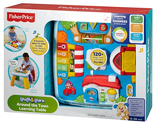 Details: Product Description Baby will find a new place (and tons of activities) to discover around every corner of this learning table. Head to the zoo and spin the roller to hear songs about animals – or press buttons to learn shapes in English & Spanish. Take a trip to the farm and open & close the barn door to be greeted by a different farm friend. At the market, press the keys to play the piano and learn about numbers, foods & colors. Now it’s off to Puppy’s home! Open & close the door to hear Puppy sing his ABCs, and flip the light switch to learn opposites. In the middle of the table, your little one can press the interactive button on the role play phone to make a “call” to Puppy or Sis, and light up a new place to visit! And there are hands-on activities all over town to keep baby busy, including sliders, spinners and more. You can even add legs for grow-with-me play that takes baby from sitting & playing to standing & cruising. Every baby learns & plays in different ways. Smart Stages technology lets you select the stage that’s best for your child on any given day! Switch up the level to switch up the learning fun, and offer up a different variety of phrases, songs & sounds for your little one! Smart Stages Technology Level 1 – Explore. First words and sounds spark baby’s curiosity. Level 2 – Encourage. Prompt baby through questions and simple directions. Level 3 – Pretend. Imaginative fun and early role play. Brand Story By Fisher Price