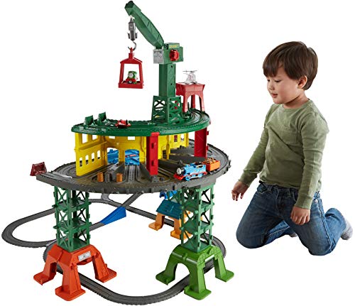 Details: Now kids can Set Friendship in Motion and imagine and play out adventures with Thomas & Friends Adventures, TrackMaster, MINIS and Wooden Railway engines all on the same track set! This multi-system track set with 3 levels of play includes Thomas, Percy, James and Harold. In addition to being able to use most Thomas engines, multiple configurations allow for layouts that can fit any space in the home. The legs can even be removed to create a micro-layout for smaller spaces! Holds over 100 engines and features over 35 feet / 10 meters of track, and features iconic locations including Tidmouth Sheds, Brendam Docks, Knapford Station, the Sodor Steamworks, the Dieselworks, Blue Mountain Quarry and the SSRC with Harold’s helipad. There are also cargo pieces, adapter pieces to connect to other playsets, two racetracks, floor play and more! Fun features include Cranky the Crane with a crane that can be raised, lowered, and attached to a cargo lift that can be used to raise cargo and engines; and a turntable complete with a stop-track lever to halt TrackMaster engines while your little engineer changes direction. The legs and locations feature tunnels, and there are areas for cargo storage, too. Additional engines and playsets sold separately and subject to availability. It’s the ultimate Thomas & Friends playset!