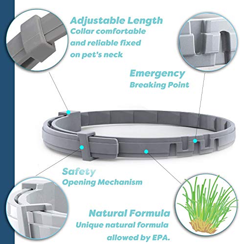 - UPGRADE DESIGN – The flea and tick collar adds a emergency breaking point design that allows your dog and cat to walk and play in the rain or wet snow without worrying about their Safety and the effectiveness of the collar.