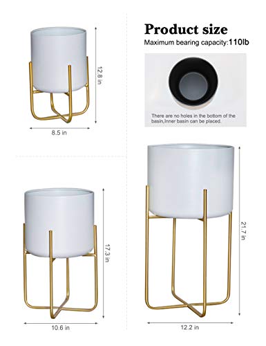 - 【SUITABLE SIZE PLANTER SET WITH STANDS】3 pices modern plant pots are in different sizes((12.2 inches, 10.63inches, 8.5 inches), suitable for plants in different sizes. Both large plants and small pants will have their containers with thess house floor standing planters with stands.