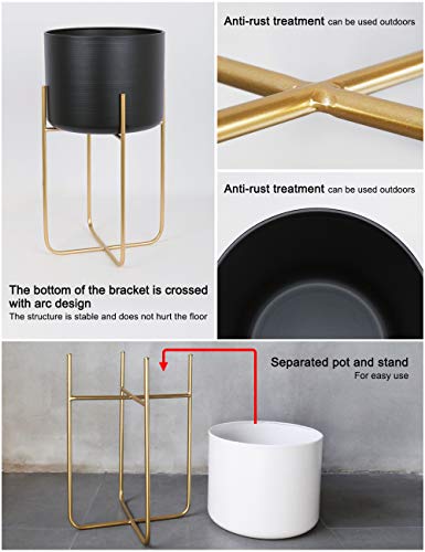 - 【COMPLETE SET & NO ASSEMBLE】 The 3 pcs standing planter pots are coming with metal plant stands. No assemble needed. Just take out the gold metal plant stand and put the black metal planters on it.