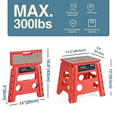 - DETAILS & DIMENSIONS - Maximum weight capacity of 300-pounds when sitting on; measures 11.2-inches long by 8.5-inches wide by 13-inches high when unfolded; measures 14-inches long by 2-inches wide by 16.9-inches high when folded.
