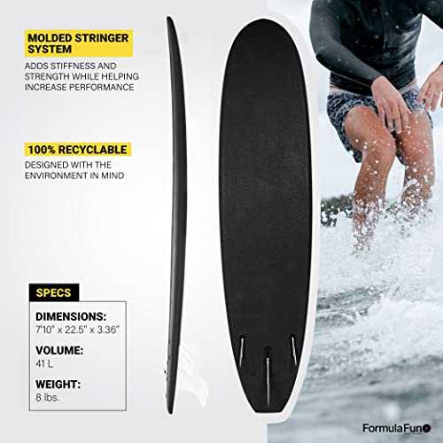 Details: Whether you're a complete beginner or a surfing expert, Formula Fun is dedicated to bringing you quality boards that bring you back to why you started surfing in the first place: fun. Add these foamies to your collection for when you just want to chill out and enjoy the waves. The innovative copolymer design means that you can shred just like you would on a regular board--but without the wax, resin, or heavy lifting. This makes it a great board to keep in the trunk of your car for when you go on vacation. No melting wax or clunky, heavy boards means that you can take our foamies with you anywhere. Get stoked to surf again. Go to the beach and have some fun!Tough on boards? No problem. Our foamies are made to last without making a repair. This is the perfect board for beginners as they learn, or for experts when they just want to relax with the waves. The 7'10" Noll is the next step in the evolution of soft boards. Shaped and designed by Jed Noll, son of legendary shaper Greg Noll, this board has all the characteristics that you would find in a traditional surfboard. This is far from your average foamie! Finished rails that allow for better turning, a contoured bottom for improved movement on the water, and performance fins come together to make this board epic. We mentioned that the deck pad doesn't need wax, right? This is a versatile, fun board that's ready to perform. Get back to loving to surf with Formula Fun!