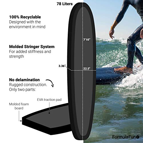 - NOT YOUR AVERAGE FOAMIE: This foam board packs a major punch. Our foamies have everything that makes regular surfboards great--without the weight, wax, and cost. This board is designed from a solid, completely waterproof piece of copolymer foam. Finished rails, a contoured bottom, and Futures Fins come together for epic performance. Our stringer system is custom made for each board from same wood used in surfboards. These boards are only 78 liters (94" x 22.5" x 3.36") for easy paddling.