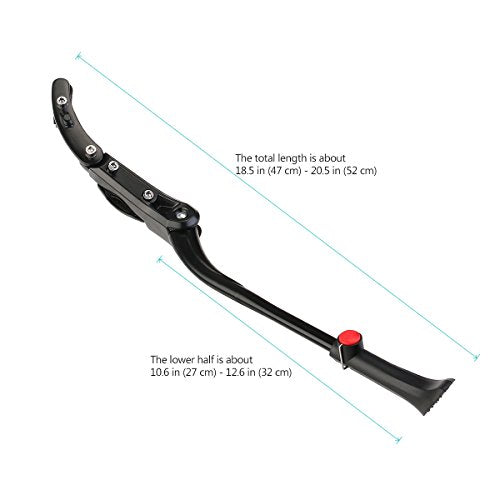 Details: Description The item is made from high quality aluminum alloy material, durable and lightweight for bicycle. The Adjustable Alloy Kickstands can change size to fit a bike from 24-29 inch wheels at a push of a red button. This kickstand mounts between the chain stays and comes with a counter plate and safety foot. It's a necessity bicycle part and good replacement for your bikes. Features - Color: Black. - Material: Aluminum Alloy. - Can be adjusted from 45cm to 50cm. - Size: 45 * 3.5 * 3cm(L * W * H). - Park your bicycle conveniently with this kickstand. - Easy to install. - Suitable for Giant ATX XTC, road bike, folding bike-fixed all tubes. - Simple practical design, waterproof and wear-resistant, durable to use. - Anti skid rubber foot cover make the bike stand steadily. A necessity bicycle parts and good replacement for your bikes. Package Including 1 *Adjustable Mountain Bicycle Kickstand