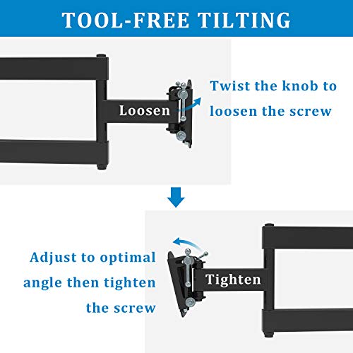• FULL MOTION DESIGN: Tilts TV 15°down for reduced glare(No extra tools needed)Swivels left to right up to 180°according to your seats position to get all the views your room could ever need. You can get the best viewing effect with the most comfortable posture.