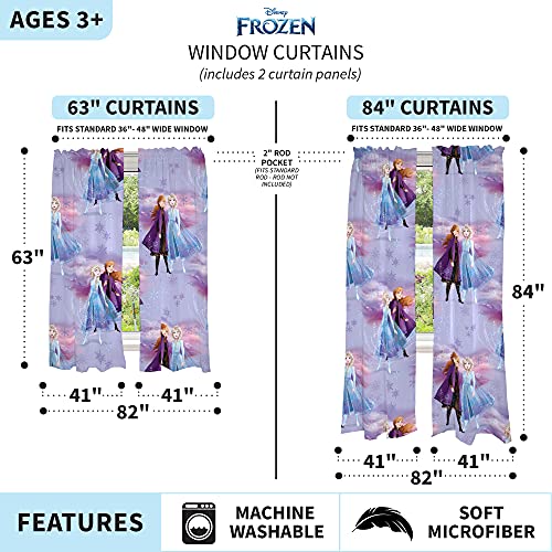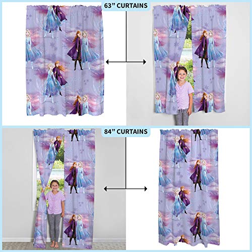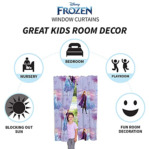 - DISNEY FROZEN 2 DESIGN: Inspire your little one to great adventures with these Frozen 2 curtains featuring their favorite snowy sisters Elsa and Anna.