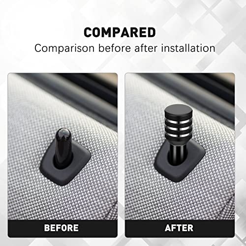 Details: Features:Exquisite and chic design: These interior door lock pins are designed with a round head, cute, smooth, and reliable for you to touch, so you can control the door of a car easily. The exquisite knobs can also be simple for you to find, fitting the inside appearance of your car well.Delicate gifts to share: These vehicle door panel lock knobs can be a thoughtful and warmhearted present for you to choose, you can send them to your parents, colleagues, friends, and other people who love cars, to enhance your relationship and show your love.Specifications:Material: aluminum alloyColor: black and whiteTotal length: approx. 1.97 inchKnob diameter: approx. 0.47 inchDiameter of inner hole: 0.2 inchOuter diameter: approx. 0.31 inchQuantity: 8 piecesPackage includes:8 x Inner door lock knobsNote:Manual measurement, please allow slight errors on size. In order to avoid inconvenience to you, please check the size before ordering.The color may exist slight difference due to different screen displays.It may not be compatible with 2015 F-150 supercrew lariat 4x4 / 2013 Ford F-150 / 2018 Ford F-150.The mention of these brands and any related model above is only for purposes of expressing compatibility, not for trademark, and our trademark is Frienda.