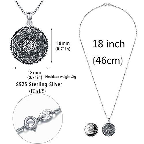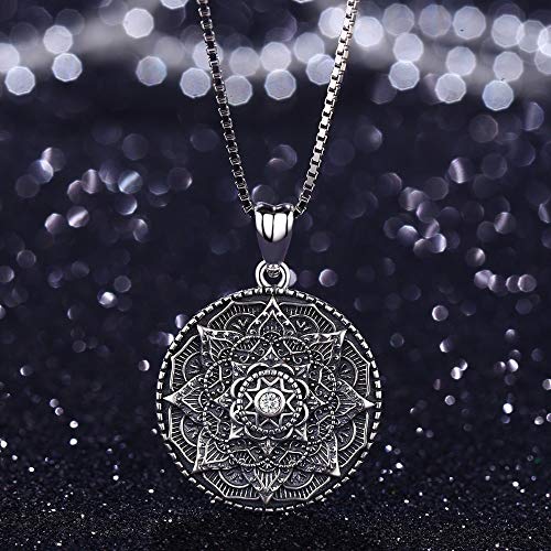- ※ Material: 100% S925 sterling silver necklace with pendant, nickel-free, without any harmful ingredients.Mandala women's necklace protection pendant,unique geometric ladies nacklace jewelry charm for yoga,meaningful gift for women,teen girls.The vintaged nacklace pendant surface is bling and delicate, not easy to deform and skin-friendly, would look new even after wearing for a long time. You can actually wear this necklace with either side facing out since they both have a distinct pattern