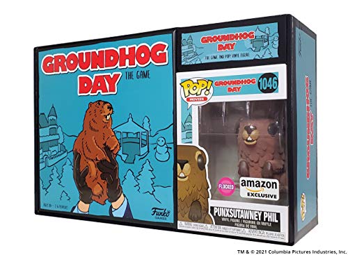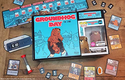 Details: “It’s Groundhog Day, again!” says cynical weatherman Phil Connors, as he endures February 2nd over and over. Relive Phil’s day round after round in this clever cooperative card game. Choose strategically how to react to the same obnoxious townsfolk and events as you get better at leading Phil’s life. Win by playing out the perfect day in which a kind and charitable version of Phil wins hearts and can return to normal life! This exclusive bundle is the only way to get the Flocked Punxsutawney Phil Pop! figure!