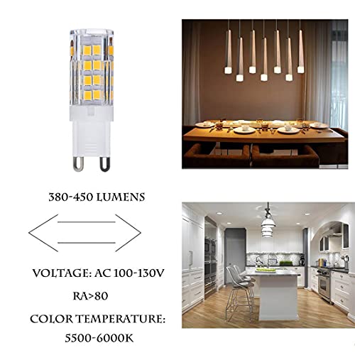 Details: Socket: G9 Base Wattage: 4 Watt Dimmable: YES Input Voltage: AC 120V Beam Angle: 360 degree Color temperature: Soft Warm White(3000K) Incandescent Equivalent: 25/40 Wattage Halogen Size:(ΦxH): 0.63 x 1.97in Luminous: 450lm Packing: 6pcs/box Please make sure you need G9 base.