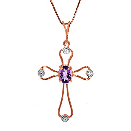 - 0.57 Carat 14K Solid Gold Faith Amethyt Diamond Cross Pendant Necklace