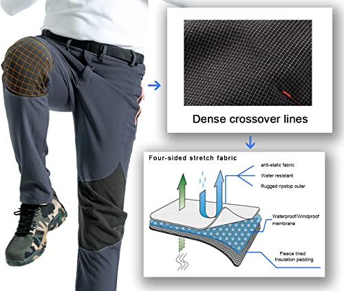 Details: Multi-layered construction Wind and water resistant outer shell Features a high-tech outer shell that helps you stay warm and dry all day long. Comfortable, warm-lined fleece with lightweight, warm polyester fleece Flexible, advanced insulation: keeps warmer under the same weight, making the movement smoother The overall design of the trousers: modern sports version, 16D draping of the knees, making the trousers look smoother. Pants-lined zipper mesh helps balance body temperature faster. Pants leg zipper design, double cuffs, double waterproof Hiking snow skiing climbing fishing hunting traveling snowbarding mountain camping