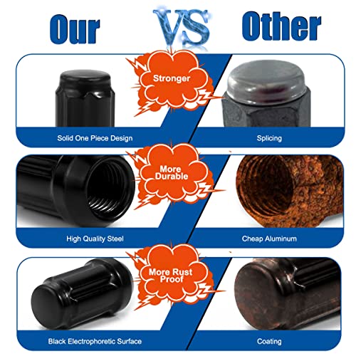- FEATURES - Solid One piece design. Our black lug nuts are made of high-quality steel and have a black surface formed by electrophoresis. The color is more durable, not easy to rust and fade.The thread is clear, clean and easy to install