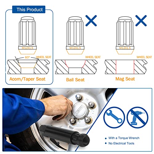 - ★FITMENT★ - Only fit for wheels with studs M12x1.5 and conical seat - 60 degree Lug Nuts. Please confirm compatibility with your vehicle before purchasing.