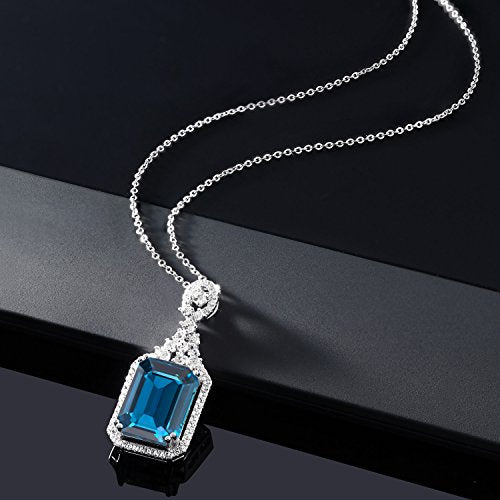 - MEASUREMENTS: 14x10mm Emerald Cut London Blue Topaz, 1.25x1.25mm Round White Zirconia. Total Carat Weight is 10.1 cttw.