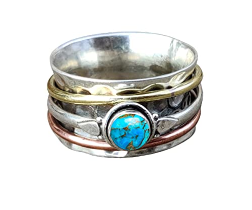 - Spinner ring made of solid 925 sterling silver featuring a Garnet Healing Gemstone and a Copper & Brass spinning ring which Spins around a wider band of solid silver.