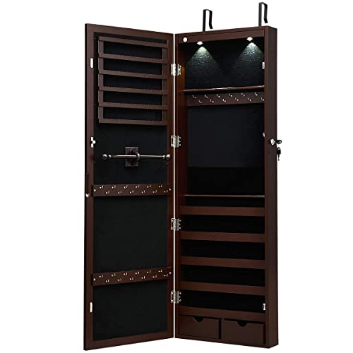 - 【Durable Wall and Door Mounted Jewelry Cabinet】This jewelry cabinet is simple in shape and uses the MDF as main frame material. The frame is thick and with a certain strength, will not easy to warp. The cabinet can be both wall mounted and door mounted and the height is also adjustable as your needs. This jewelry cabinet save much space for your room.