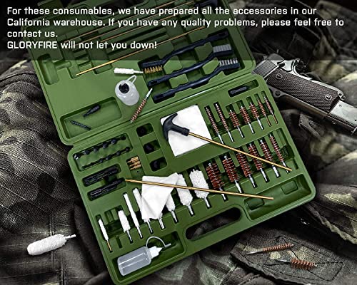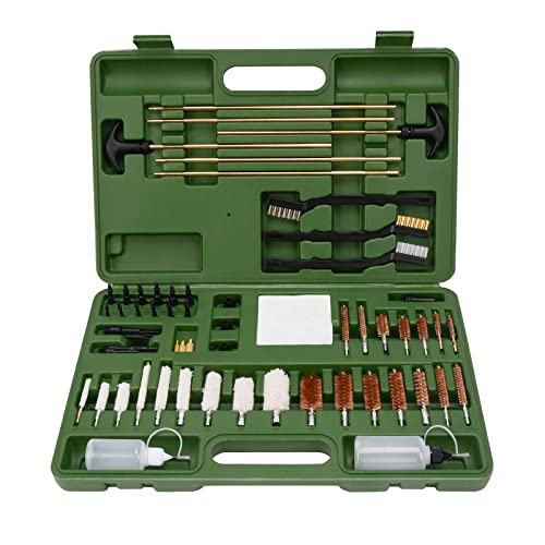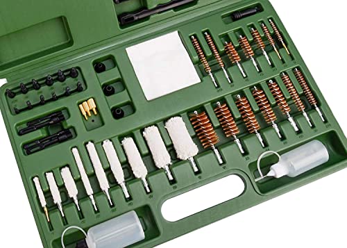 - All-in-one: Universal cleaning accessory kit for used for all types of shotguns, rifles and pistol cleaning. All you need to clean common caliber guns in a compact case. Our case is designed to keep the pieces in their place, we also included 2 spaces to put you cleaning oil and solvent.