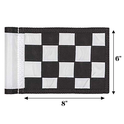 Details: GOLF CITY PRODUCTS Checkered Mini Golf Flags with Tube Insert are made from premium 420 denier UV-stabilized nylon and double stitched so they won't fade or fray with prolonged exposure to sun and other harsh weather conditions. Compatible with most golf flagsticks, our golf pin flags are sewn to ABS plastic tubing so they can easily swivel to show wind direction