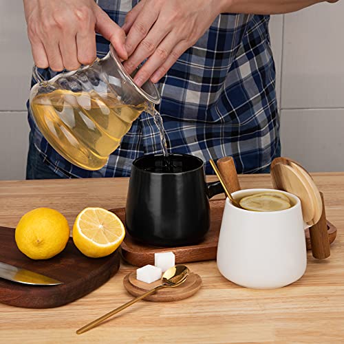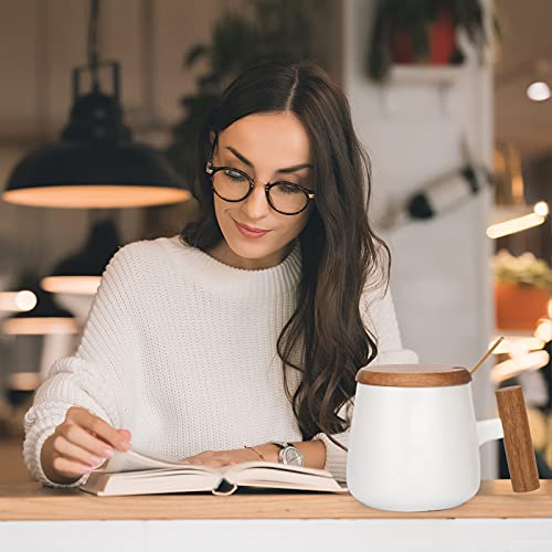 - LARGE COFFEE MUGS: his mug has a large capacity(14 Oz) with wood lid and golden coffee spoon, larger than most of mugs, which will definitely meet your needs for office and home.