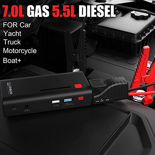 - LIGHTWEIGHT AND SLEEK DESIGN: The GOOLOO portable car battery jump starter power pack weighs just 1.19 pounds and measures 6.18x2.95x1.42 inches. You can easily hold it in your hand, or put it in your pocket, or put it anywhere in the car.