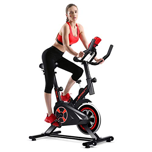 Made of heavy-duty metal, this bike is sturdy and can be your long-term choice. The double-triangular body structure and the bolded and extended base ensure the stability of the bicycle. The flywheel is mute to work so that you don't have to worry about disturbing your family during exercise. The bike features adjustable resistance, which allows you to enjoy all kinds of difficult sports modes. And the emergency braking system can help stop at any time, which is very convenient and safe.