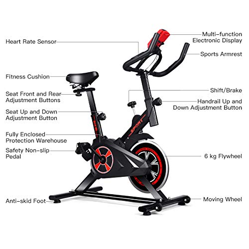 - 【Easy to Assemble and Move】This indoor exercise bike comes with a clear and brief instruction, which has straight forward illustrations and descriptions, helping you complete the installation quickly. What's more, there are two wheels on the bottom that make it easy to move the heavy-duty exercise bike.