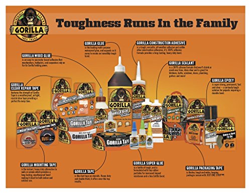 Details: Gorilla tape has taken duct tape to a new level. This double thick adhesive tape surpasses ordinary duct tapes, making the list of uses virtually endless. Made with double thick adhesive, strong reinforced backing, and a tough all-weather shell, it’s the biggest, strongest, toughest thing ever to happen to duct tape. Gorilla tape is manufactured with a highly concentrated rubber based adhesive – two to three times as thick as traditional duct tape. The result is a tape that fills gaps and penetrates Rough surfaces. It sticks to Rough and uneven surfaces, including wood, stone, stucco and brick, that ordinary duct tapes can't hold. To us, it’s made the way tape should be: the toughest on planet earth. Directions: use like any other tape. Tear Gorilla tape by hand or cut to size with a knife or scissors. It is important to clean the surface and brush off any loose particles and dirt before applying Gorilla tape. Apply the tape carefully, smoothing out any pockets or rolls. That’s it. Enjoy the strength and durability of Gorilla tape! to retain adhesive quality, store Gorilla tape in a cool, dry place. Keep out of direct sunlight. Try storing the tape vertically (rather than laying flat), on a hook or on wax paper. If you have multiple rolls, keep your excess Supply wrapped until they’re needed. Gorilla tape works best at temperatures above 32°f (0°c). for best results, always apply the tape at room temperature. If Gorilla tape freezes, it will work just fine Once it returns to room temperature. Gorilla tape can be removed, but with some difficulty and it may leave some residue. To remove any excess residue, we recommend using the tape itself as a blotter. Gorilla tape should not be used as an electrical tape. We’ve found that Gorilla tape will last a lot longer than regular duct tapes when it comes in contact with moisture. Click on the Gorilla link at the top of this page to see other quality products from the Gorilla glue company.