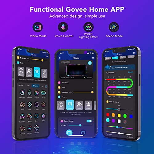 - Smart Voice Control: Manage your LED lights for TV with simple voice commands, via Alexa and Google Assistant, or with the Govee Home app. Enjoy access to more colors and features like Timer, Video, DIY and Music mode, helping you create the ambiance you need.