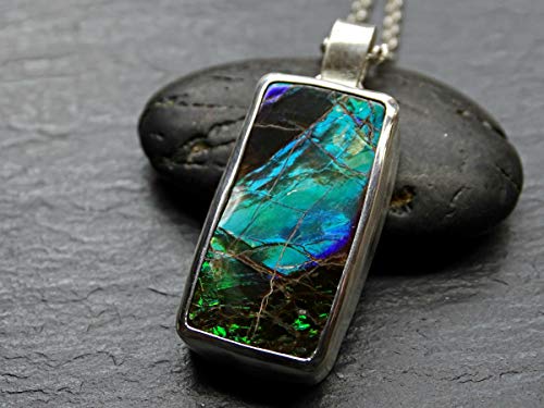 Details: // Stunning Ammolite gemstone pendant in sterling silver. // Reminiscent of a butterfly wing this stunning Ammolite comes in beautiful blue and purple. // Gorgeous gemstone necklace with a rare gemstone. Great gift for your girlfriend, wife, yourself or any other special person in your life. > the pendant has an overall hanging length 30mm (1.18 inches) including the bail > genuine Ammolite gemstone itself is 21.5x13.5mm in the setting > sterling silver chain in the length of your choice // This rare gemstone is a real, earth mined Ammolite from Alberta/ Canada. It is a doublet gemstone, with jet bottom. It has gorgeous purple and blue colors, depending on the angle you look at it. Safely set in a closed sterling silver setting, with a closed back for protection. // Ammolite is the fossilized shell of ammonites (extinct squid-like creatures), with an opal-like color play. Ammonites, squide-like creatures, became extinct 65 Million years ago. Under pressure, their shells were turned into this amazing gemstone in the earth. Ammolite is one of the rarest organic gemstones, and the deposits on the East slopes of the Rocky Mountains are expected to be depleted within the next 20 years. It is the official gemstone of Alberta/ Canada. > You will receive the same pendant shown in the pictures, in an elegant jewelry box and ready to be given as a gift.