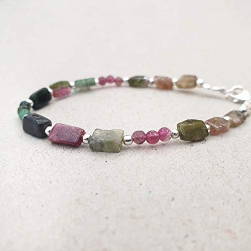 Details: This bracelet features natural round and rectangle shaped Tourmaline beads with Sterling Silver chain and clasp. The beads measures approximately 3-3.50 mm in size and the length of the bracelet is 6.50-8 inches with the extension chain.